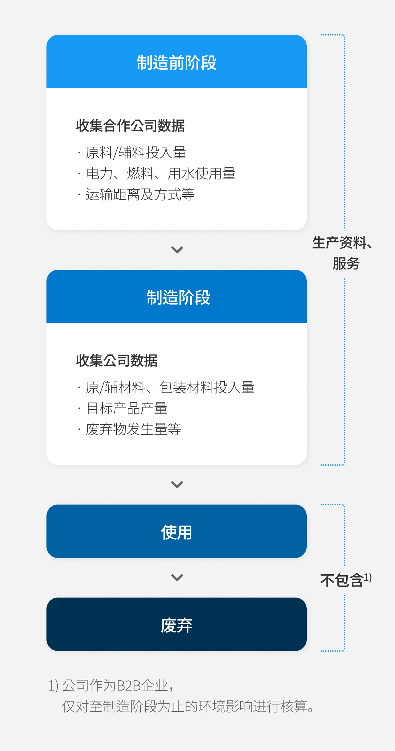 作为一家生产并供应零部件的B2B(Business to Business)企业,三星电机根据韩国环境部下属韩国环境产业技术院提供的生产资料产品环境绩效标志编制指南,对从产品制造前阶段(供应链)到制造阶段(三星电机生产基地)所产生的碳信息进行核算。近年来,随着客户对碳信息的需求从单一生产基地不断扩展至产品层面,为系统性应对这一问题,公司正在探索自主的碳足迹核算方法,并审议建立按产品分类的数据库方案。